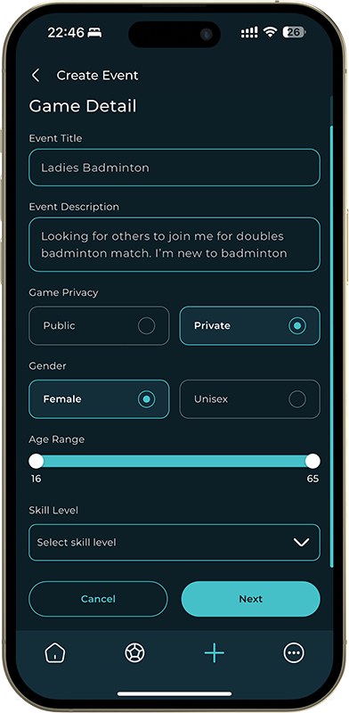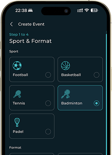 Easily find & join matches, organise your own and connect with other players all with just a few taps.